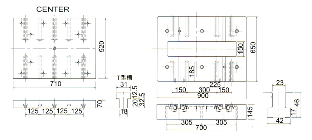 Bolster area and thickness / 工作臺面積厚度 MM 145×650×900